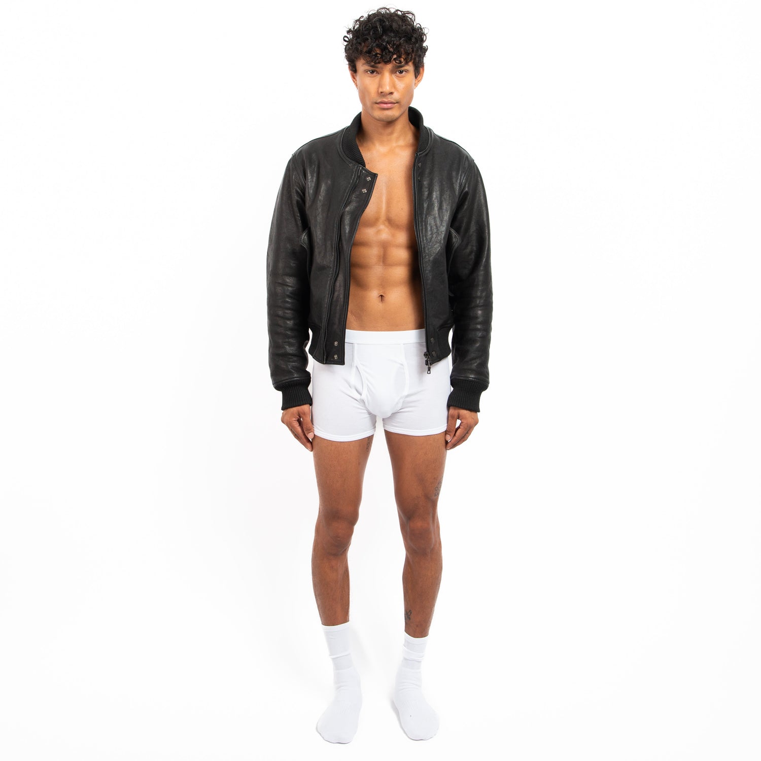 Leather Bomber Jacket - Black