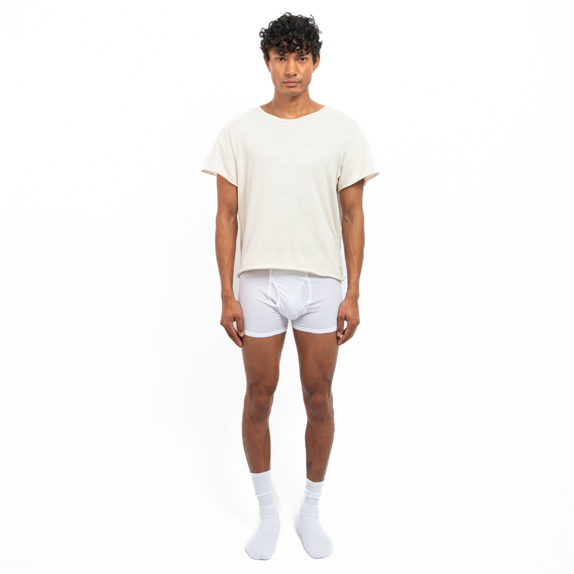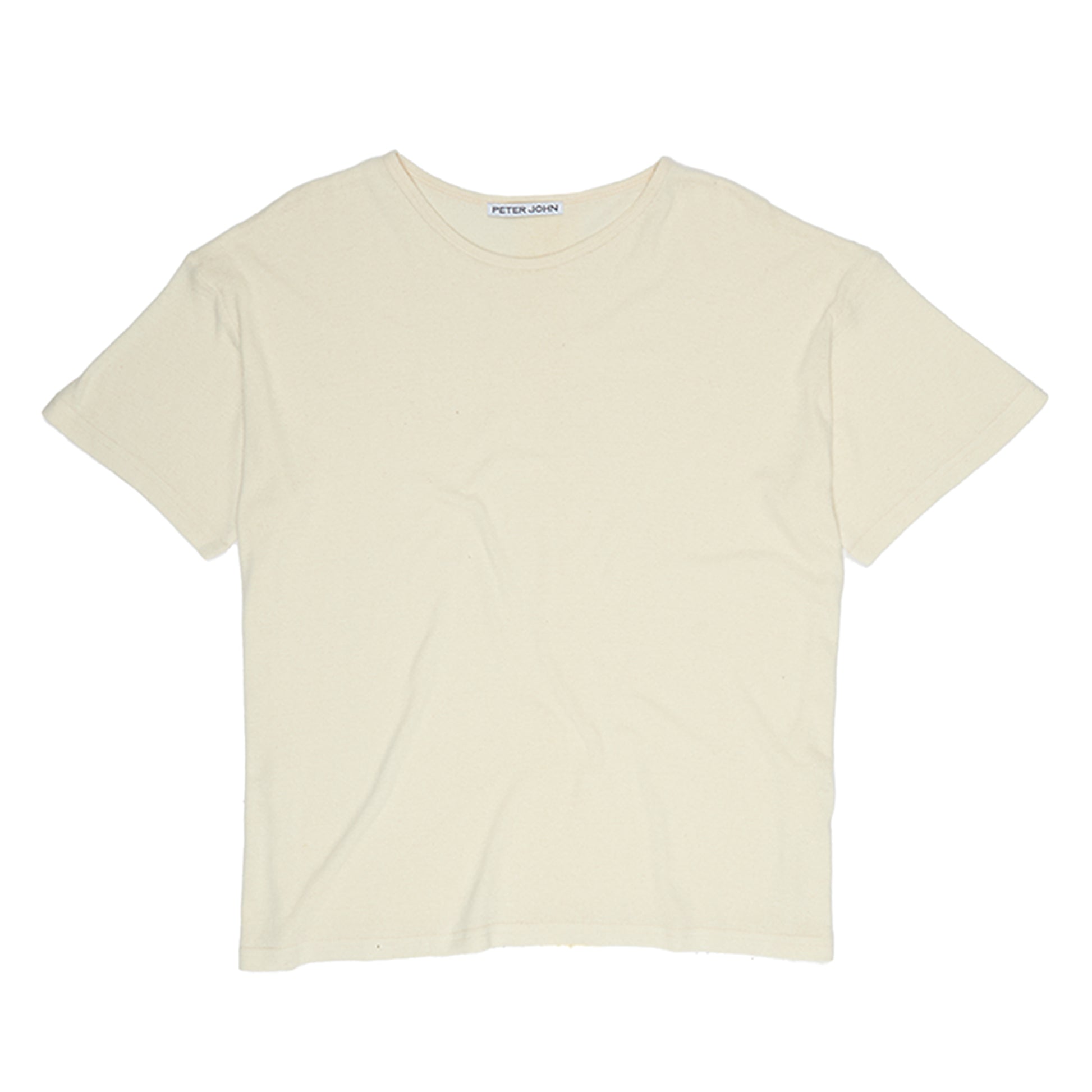 A loose fitting t-shirt made from slub silk — a textured silk fabric woven with uneven yarn featuring thicker strands known as “slubs.”